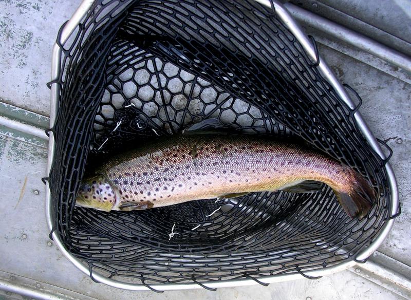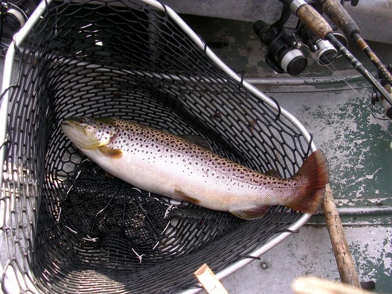 The boss and I got out today to check out my boat repair. It was only for two hours to check things out for a longer outing tomorrow. Not long after starting out with a water temp of 41 degrees, she had the first fish of the year on and after a nice fight a Brown that hit a blade, came to the net.(1st pic) Not long after that I caught a bigger one on a jerk bait. (2nd pic) Then I caught my first bass of the year and a nicer SM, both on a JB. The water temp only got as high as as 42 degrees and the wind was a bit gusty at times but it was good to get out since the last time was mid December. We are CR fishermen and all were returned gently back in the lake to be enjoyed another day.