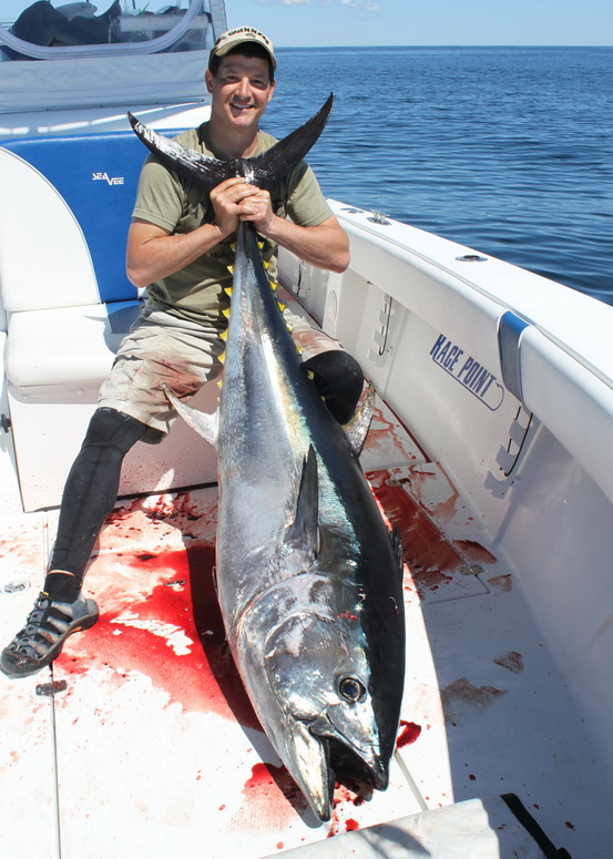 The following report is very long (and maybe long winded) but I wanted to start by giving proper respect and thanks to my fishing guide who got it done for me today. This guy – Captain Josh Zacharias from Outermost Angling Charters – is a true tuna killing machine! He’s an easy going guy with a great disposition and an incredible knowledge of the local waters after growing up and fishing there his whole life. If you’ve EVER had the desire to hook and land a true giant of a fish using standup spinning tackle and top water plugs and poppers, Josh is the one to call and Cape Cod is the place to go. I travel from NJ a couple times each year to this fishery but people literally come from all over the world to experience the same thing. Don’t let an opportunity for an experience of a lifetime pass you by because of silly things like work or money or family obligations. Life is too short for that so if you are a fisherman who has not experienced this kind of fishing then you need to make the time to make it happen. The time is NOW and the dates in Captain Josh’s book are filling up fast.