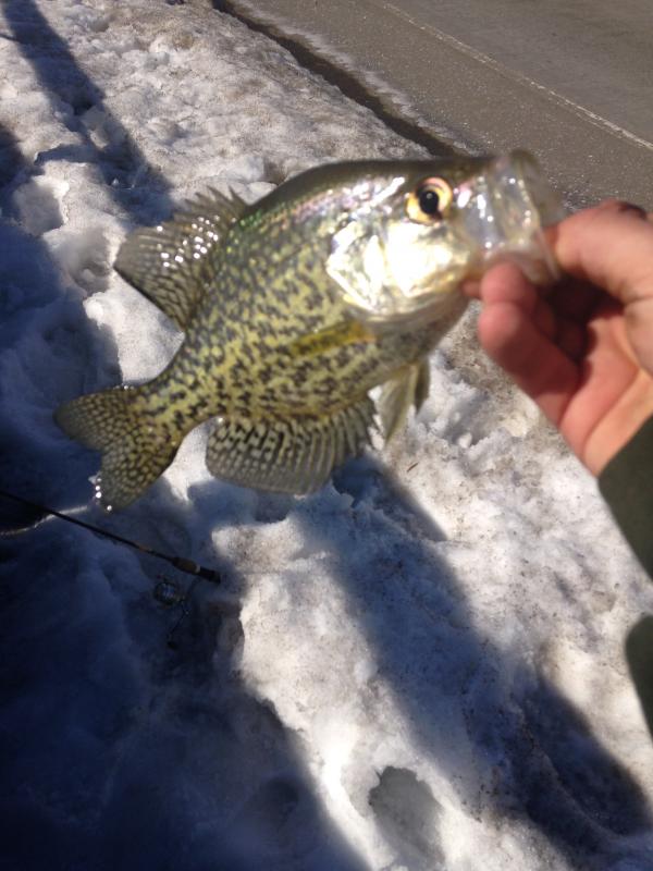 Took advantage of warm temps and ice melting this weekend. 3 days in a row, same spot, but better results each time. Saturday was a slow and steady afternoon, nothing big. Was there for 5 hours, bite died halfway through. managed around 10 perch plus a couple crappie. Yesterday fished around the same time and caught over two dozen, many were great eater size. Today i could only stand the icy winds for an hour and a half, but still nailed a dozen and a half fish before sundown, including a jumbo golden shiner (pike time is coming :D). Not a fan of live bait but drop shot worms worked better than gulp for once.