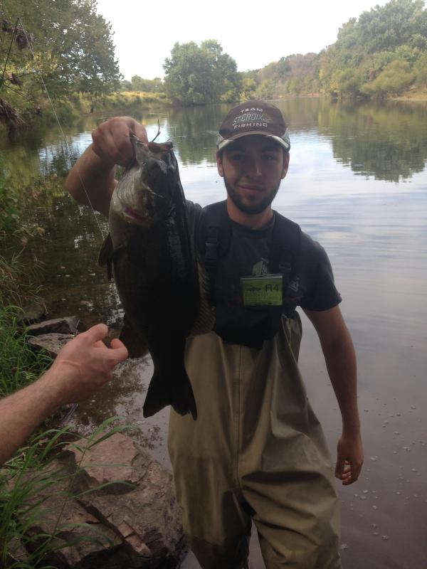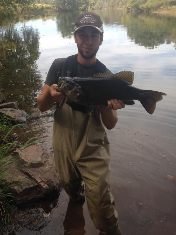 Spent the afternoon with my dad and brother on my favorite river. Within 20 minutes i hooked what will probably be the biggest bronze in my life. Chunky and just under 6# on the scale :D. Picked through many smaller fish for the remainder of the day. Hooked a monster carp on a tiny crawfish jig that gave me a drag screaming run that was short lived; looked down at my spool and saw a birds nest then SNAP...:mad:. Still happy to the day with a nice mixed bag of smallies and rock bass