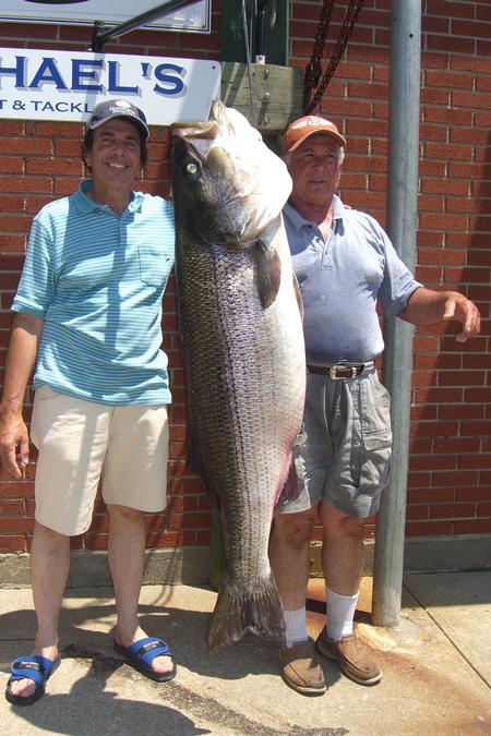 All I can say was it looked like the fish was bigger than the guy who caught it. Frankie Noto (the man who got it) / close friend Vinny Vetere (on the left)