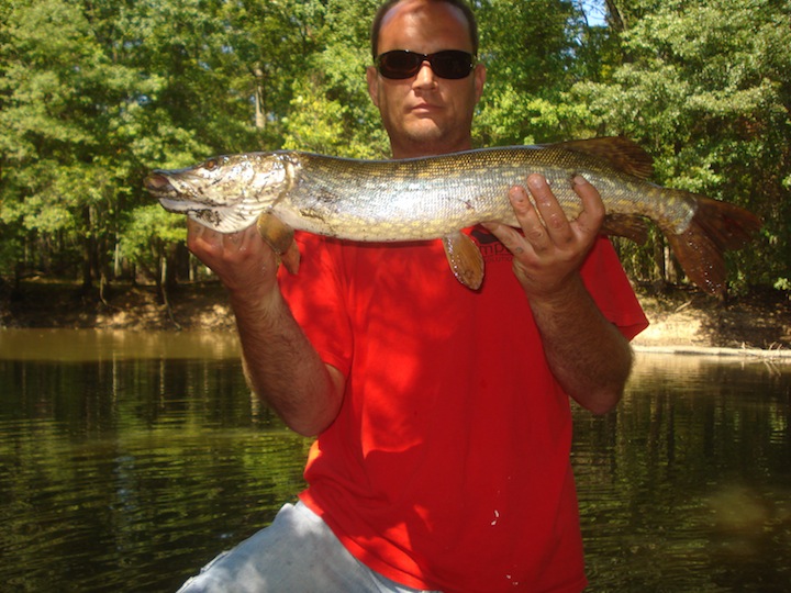 Hit the river for a little while before work this morning. Water is low and thats the story all over the place. Ive never seen the Passaic this low. Anyway started throwing the usual spinnerbaits and swimbaits only to result in swings and misses. Thought about the situation at hand and decided to slow it down ALOT. Went 5/5 after I decided to take the presentation down a notch. Jigged up 5 PIKE, 3 of them average size, 23-24, 1 measuring 28. The final PIKE of the day was ripping drag going BANANAS, even did 1 jump for me. This guy measured a hair under 37 inches and weighed 11 lbs 7 ozs according to the crappy scale I had in my bag. Now thats a good start to the work day. TIGHT LINES, GOOD TIMES!!!