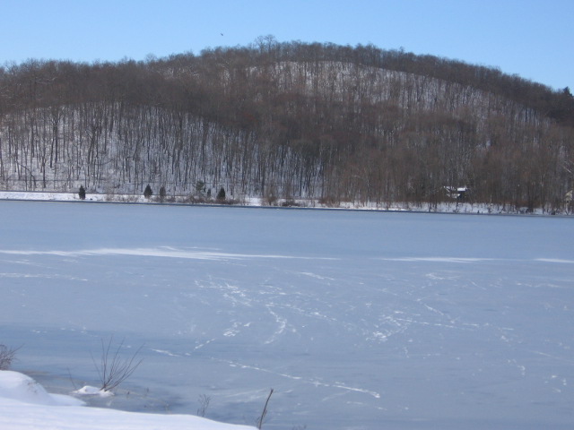 Drove up to monksville this morning to have my coffee and check it out for you guys. It is almost completly covered in skim ice. Very little snow, but I wasn't goin out there to see how thick it was