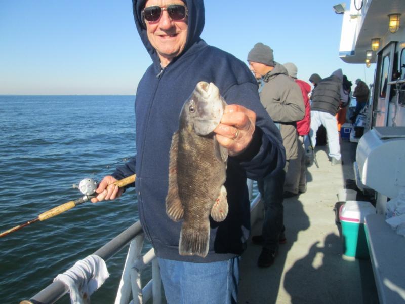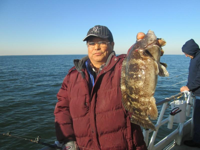 Started the day off shore where we found some nice tog and a few cod but were unable to stay with the impossible anchoring conditions. At the end of the day when the wind flopped and the current ran the bite turned on. Barry Searcher from Allentown took the pool with a 10 pound cod and William was a close second with another cod.