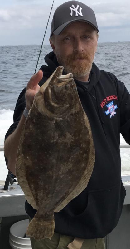 Today aboard the Down Deep Bull, we ran another 6 am Jumbo Fluke & Seabass trip for John and a great, big crowd of friends. Fluke fishing was good, especially towards the end of the trip where the crew saw more beautiful keepers to 6 lbs. coming over the rails, making for a nice day out on the water. Ocean Fluke fishing is getting good now, don't delay book today and get right on em. Thanks everyone for sailing with us and all others who continue booking rough bottom Jumbo Ocean Fluke, Ling, Cod, winter Flounder & fall Jumbo Striped Bass, Tog & Seabass trips going forward at a rapid pace. Back at it now with pm trips today and 4 tomorrow. Don't miss the next open boat trips -