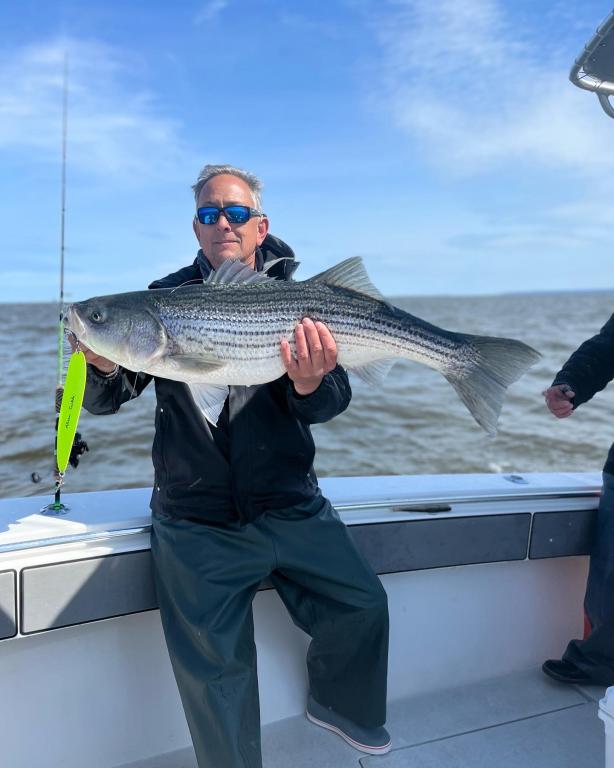 Good fishing for Cliff and friends this morning. Picked away all day on shads and spoons with fish to 32# with a few dozen releases.