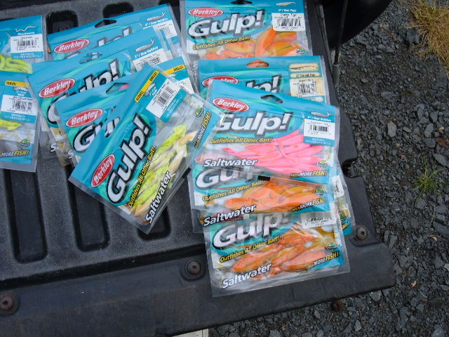 Picked up a lot of Gulp cheap. Keeping some(I'll give them one more chance to work) and selling the rest. Crabs, clams, baitfish, squid, sandfleas(which look good for ling) and misc. others. Probably be down the Angler and J2 but if you think it's worth a drive I'm in South Brunswick off route one. 3 packs for 10 bucks. Bruce 732-297-4570