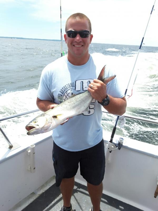 We had some good shots at the BLUES at the end of the day. Not much went on earlier in the day. We did catch some fish, but not enough. The BLUES ranged from 2 to 6 lbs and were caught on Run Off hammer jigs and crocs.