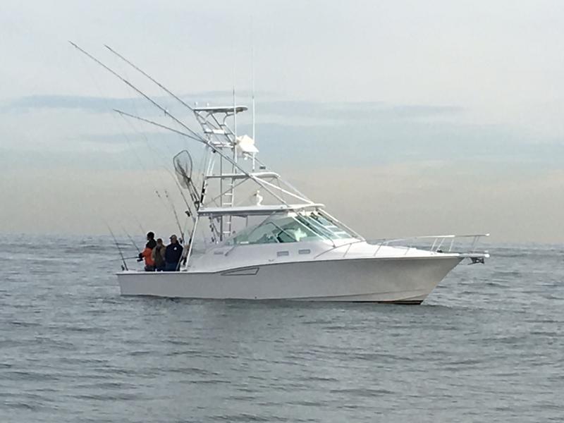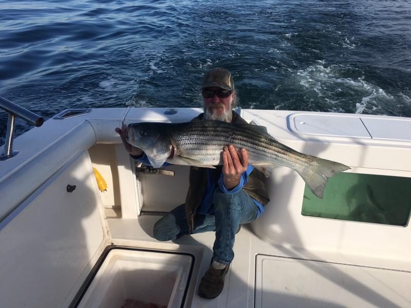 On Sunday we hosted the Rick Applegate charter for stripers. Made bait quickly off MI but with no takers we ran way north thanks to Capt. Mike on the Chumbox. Trolled our under limit on shad rigs with the rest released, good day of fishing. Nice to have speed, hot coffee and heat on the new sled. We are now booking fall striper charters please call to reserve, 732-580-6910.