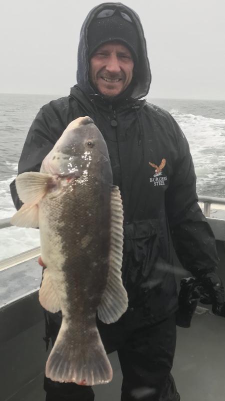 Today aboard the Down Deep Bull we ran a 6 am Blackfish trip for Tim and a big crowd of great friends. Much improved Tog fishing with plenty of keepers to 8 lbs along with many shorts returned to swim another day. There were Porgies, Seabass and a lonely Ling that went into ziplocks as well. Just goes to show ya, the water temp “down deep” is still holding the other bottom dwellers close along with another new big body of Striped Bass. It’s the most wonderful time of the year. Thanks everyone for sailing with us again and all others who continue booking Jumbo Striped Bass, Tog & Seabass trips going forward at a rapid pace. Don't miss the next open boat trips -