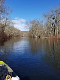 We hit the Musky River in and around the area of Tilcon Sunday around noon. The water was clear and moving fast and no real signs of life yet. We tried and tried and tried to paddle upstream but we couldn’t really get to our destination because of the surging water. We packed up the Yaks and moved to plan B. Head on up to the Aeroflex area and hit one of the lakes. Fished in about 5 to 6 feet of water right at the weedline. I landed this nice bass on a small crappie jig and a Keitech Spider grub in silver and blue glitter. Called JP over to the area since it was the only action we got in about 3 hours. Shockingly he landed a Bass on a traditional double bladed spinbait in red. I guess the Bass are starting to get hungry. Hoping for some better weather the next few weeks to jump start the spring bite.