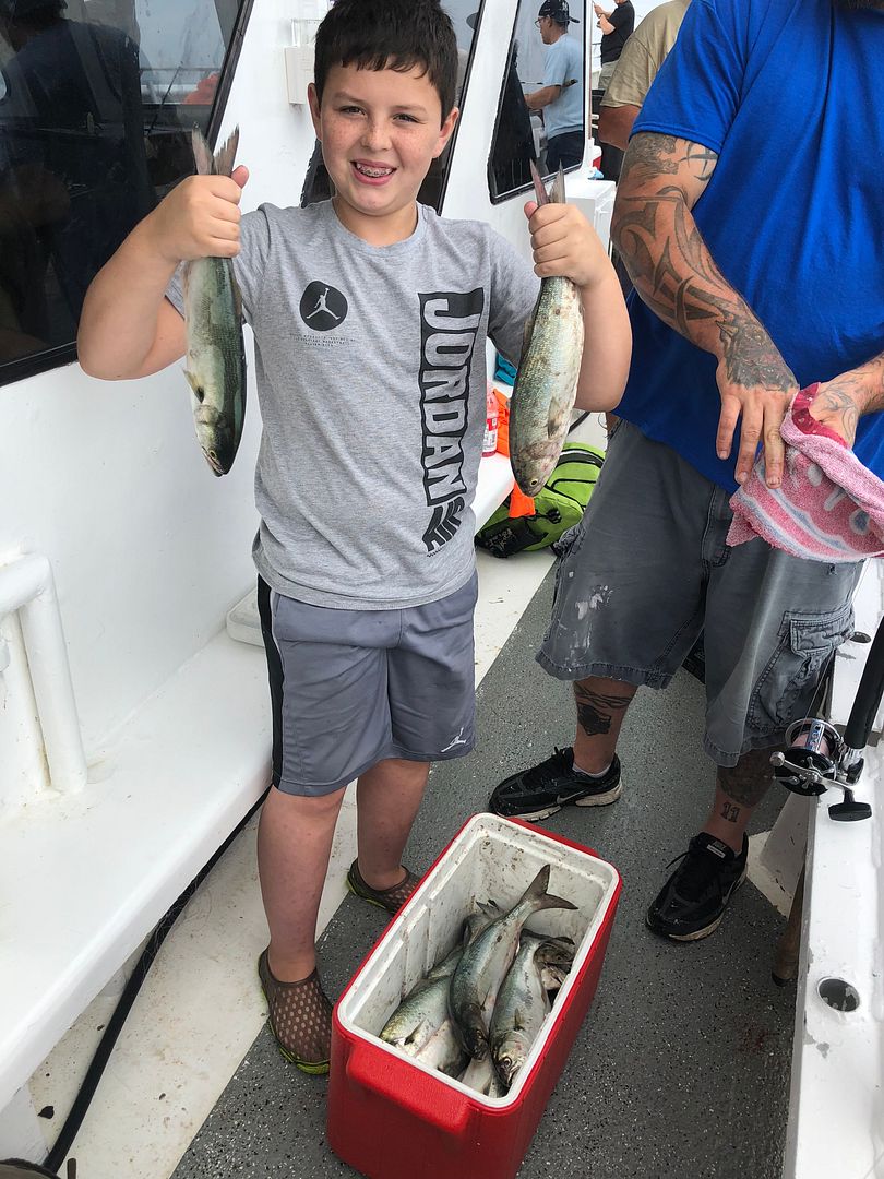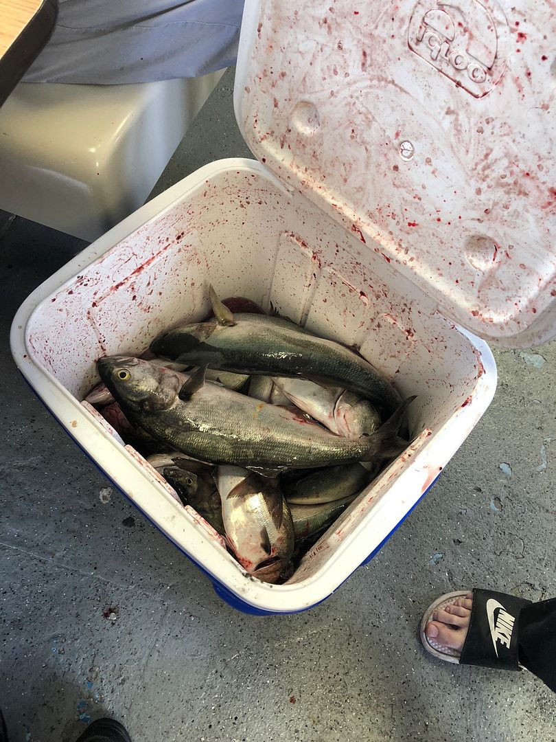 We had an all around good day today of angling! There were some decent drifts, and a few slow drifts, where we caught blues anywhere from 1-6 lbs. We also had a good amount of sea bass with some porgies, albies & bonito mixed in! Plain ava 27’s worked the best. Our pool winner was Kelsey Robinson from Frenchtown, NJ.
