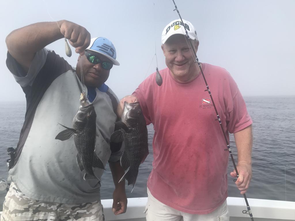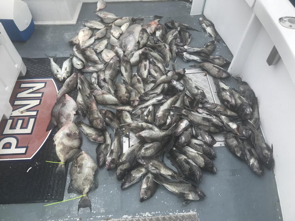 Today was as good as it gets, not only was the weather perfect but so was the fishing. Guys boxed up our 80 sea bass with some triggers porgies and blues mixed in by 9:30. Tried a couple spots for some blackfish. We picked a few shorts along with a few keepers and bunch of sea bass that were all released. The sea bass fishing is as good as it gets. We have dates available next week. We have Saturday 10/13 open with spots available. Call or Text Capt Nick 732-299-2133 to book your trip and for other available dates.