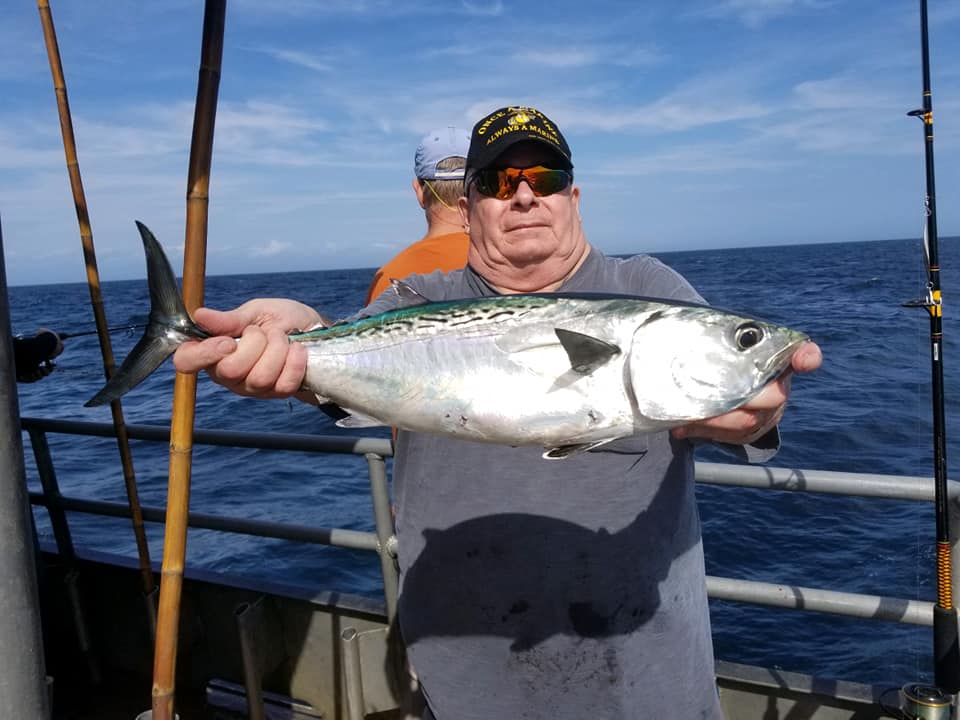 10/7 REPORT Best Day of the Week! Red Hot Action If you stayed home today because of the weather report or, you didn't think the fish were going to bite (Frank), you missed a good one. Fishing was excellent on today's Bonito and Albacore Special! It was the best fishing of the week! Everyone did well today and there was about a 50/50 mix of Albacore and Bonito along with several King Mackerel and Spanish mackerel. There were also a few blues. The pool winner was: Alan Deutsch from Hamilton NJ with a 12lb albacore. The action started right away and continued until it was time to head in. We could fish on both jigs and bait today. We should have good fishing through October. Just not the next few days. The weather for most of this week will be too rough, even for the Big Jamaica. www.bigjamaica.com Or call 732-528-5014