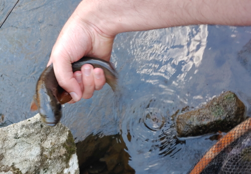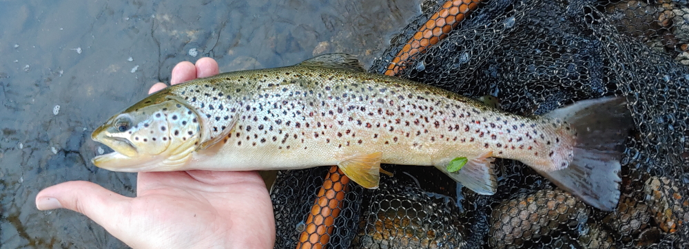 Then tried another spot downwards into the watershed, which seemed dead so just quickly went on to the third spot even further downstream. Water down here was wider.