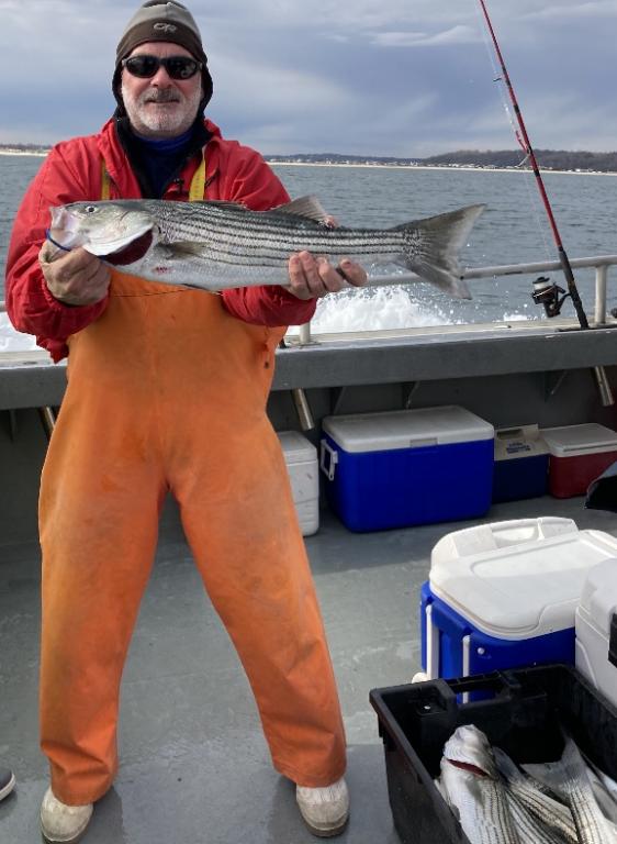 Today aboard the Down Deep Bull we ran another 6am Striped Bass trip with a great bunch of new and returning guys. The crew proceeded to deck slot and bonus Stripers, kept what we could and returned other to swim another day along with a sprinkling of keeper Seabass, Bonito & Bluefish. All cleaned, iced and bagged for all to grab without waiting before the dock lines came tight. If you haven't had the chance to get out, don't wait any longer! Thanks everyone for sailing with us and all others who continue to book all their trips going forward at a rapid pace. Check out our updated November sailing schedule with many different type trips. Booking all fall 2020 Striped Bass & Tog charters now. We will have Bonus Tags for everyone aboard. Open boat daily, (reservations always required/absolutely NO WALK-ONS), 1-15 man charters available.