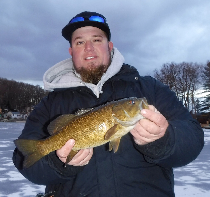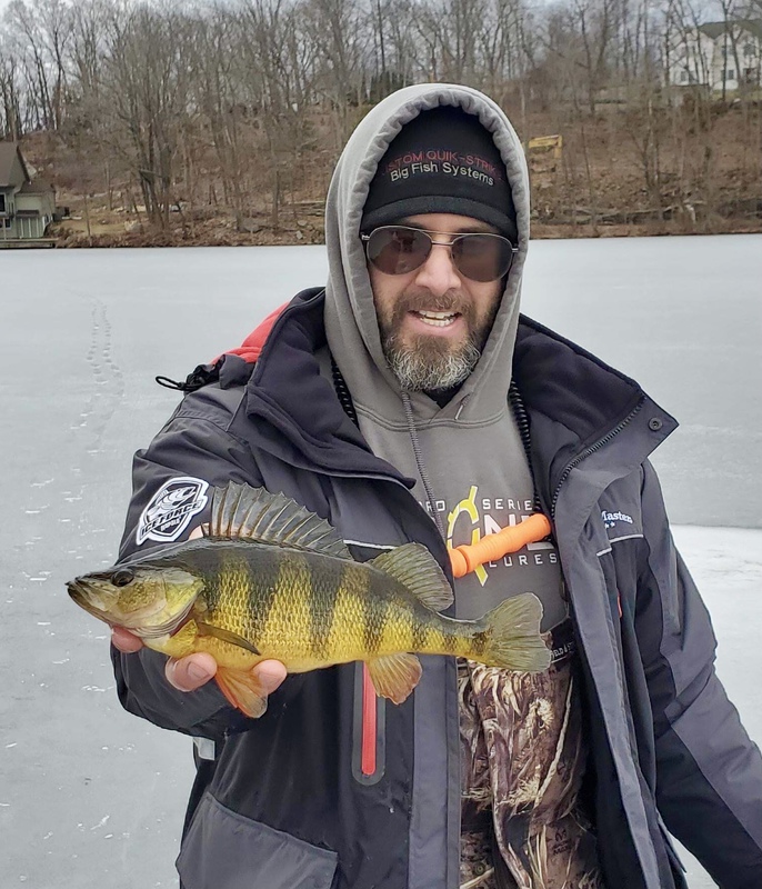 Edges were a little iffy Saturday after the rain, but the main ice was still a very solid 4" so we got back on the ice fishing!