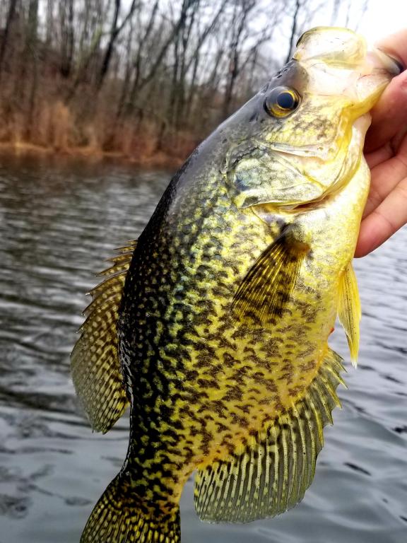 Went out Thursday morning after the heavy rains. Found a nice shallow cove with good action in 1 to 3 feet of water. Landed 10 or so gills. In between the gills ide land the occasional tank crappie. The biggest went at 13" and round n fat!! Slip bob set up with a 1/16 green jig and a pink Berkeley ice minnow 1". The wind n ripples caused enough action to get the bites. Once the wind died n the water was still...the bite was over.