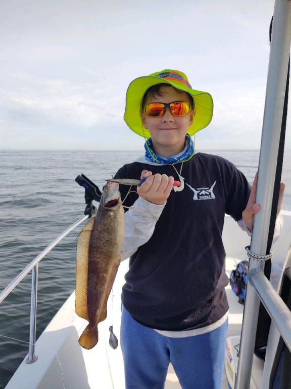 Finally got to splash the Grateful Dad this weekend, so I headed out with Pete, Kenny and Brayden. Based on some intel from a hungover, baitless, beerless sharpie, I ran out to a likely spot in 75-80 feet of water down the Sandy Hook channel. Conditions were great and we were pretty much alone, so we were able to drift with no problem. Got into a bunch of nice big ling, and a few keeper seabass, including a real nice knucklehead, shown in the rare GD photo.