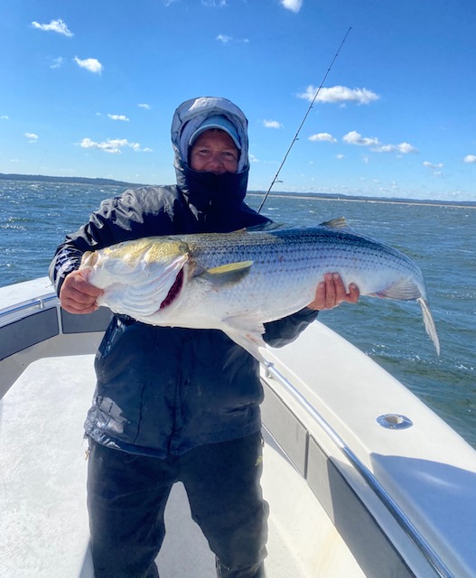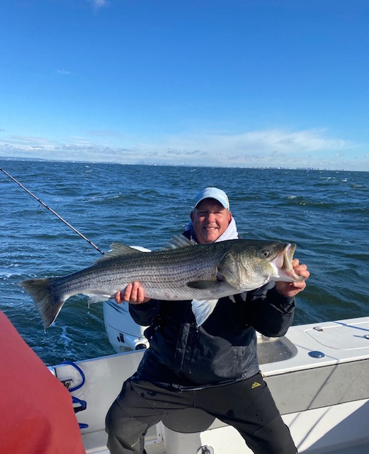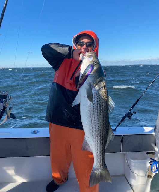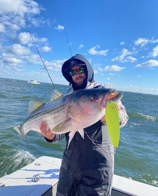 Had Paul, Rob and Chris on board today. Guys dealt with some breezg conditions, but we’re reearsed with some beautiful stripers. Had a mix of some small and large stripers today with big fish right around 40#. All caught on bait and spoons, and all released for another day.