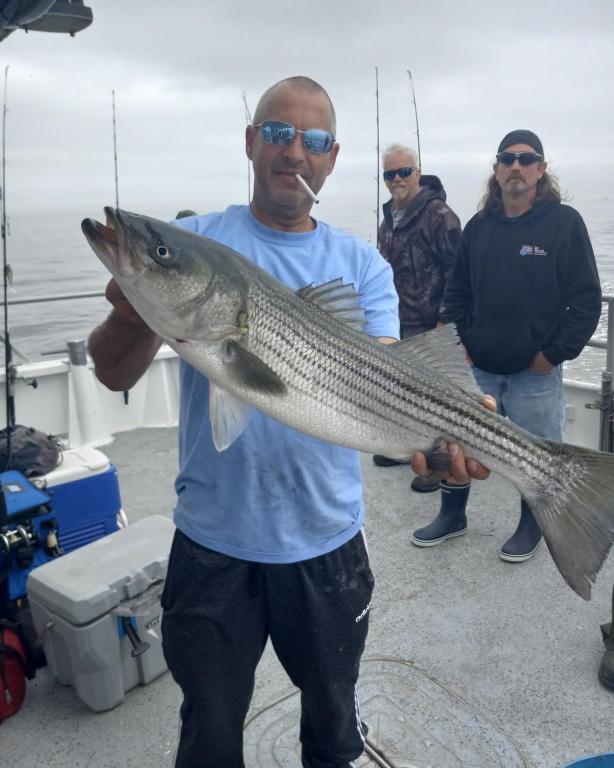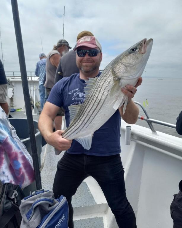 🐟Slow start to our day in the fog again until mid morning when we started picking away on STRIPERS! Had some real good drifts with multiple anglers hooked at once! Some anglers had 3+ fish themselves(only keeping their limit). Some fish were up to 34lbs! Overall great day on the water! ‼️JOIN US TOMORROW and get in on the STRIPER ACTION! 🎣 ➡️MAKE A RESERVATION at missbelmar.com or Call Stephanie 732-681-6866