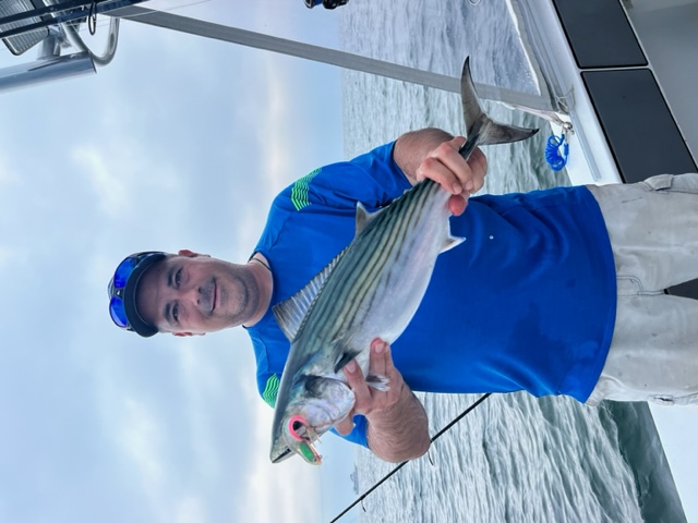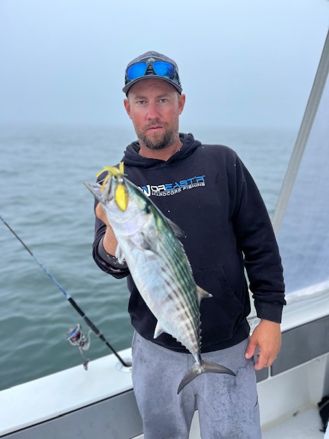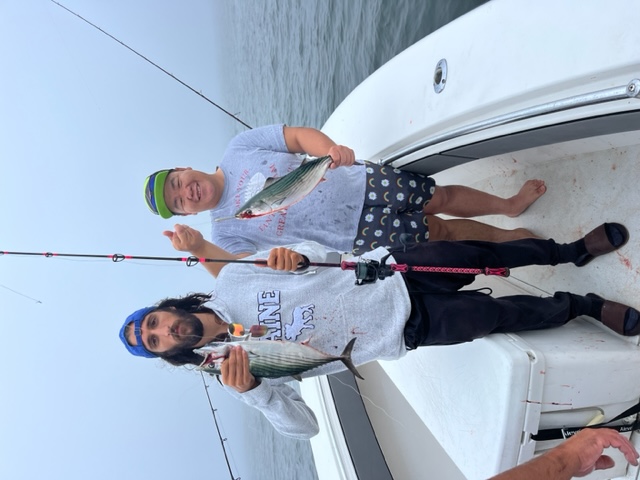 |  Fisher Price IV 9/8 Great Bonito Fishing Ran our open boat bonito trip today. Fishing was as good as it could possibly get. Held 3-5 fish on at a time for 3 1/2 hours. The guys managed to land over 125 bonito and a few blues. High hook was in the mid 30’s maybe more. Bait and jigs.