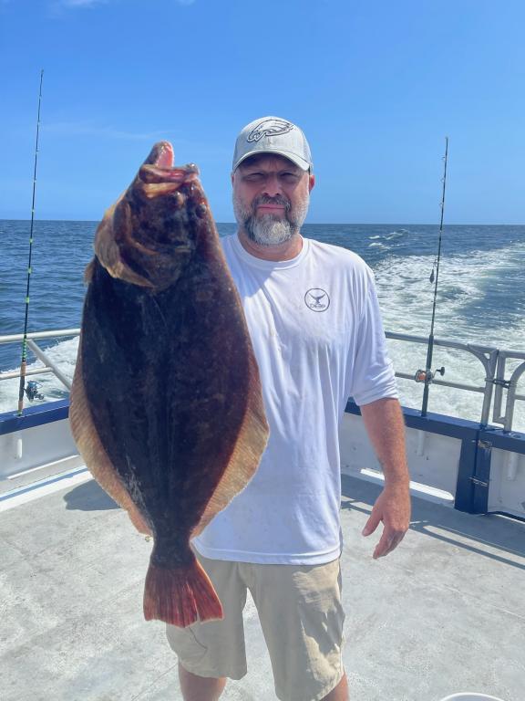 Hey gang, little bit of a roll on the ocean this morning when we got out on the grounds, but It turned out to be a pretty nice day on the ocean. The fluke and sea bass were chewing, which is nice to see after the East wind the last few days. Tony had his limit, and John from point pleasant took today's pool. Kelsey dropped a nice big one at the top, the big ones always seem to get away. We will be hunting that one and other big ones on tomorrow 7am fluke marathon.