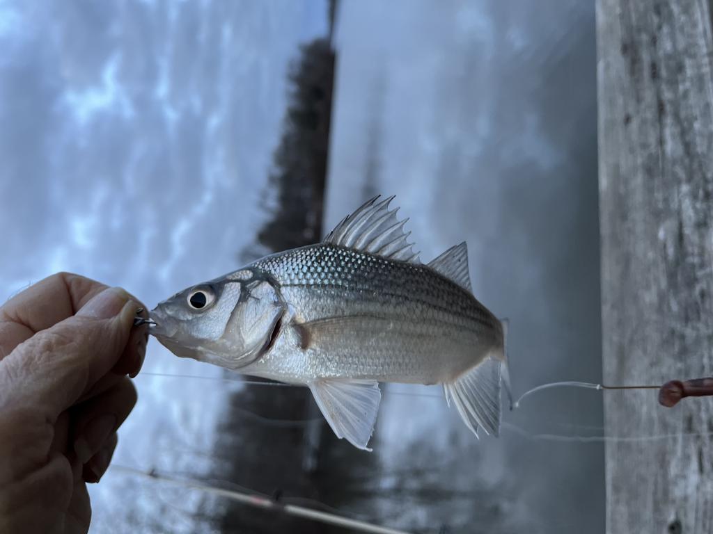 Caught and released 5 white perch with Walmart red worms in partially frozen 37 degrees Carnegie Lake this evening.
