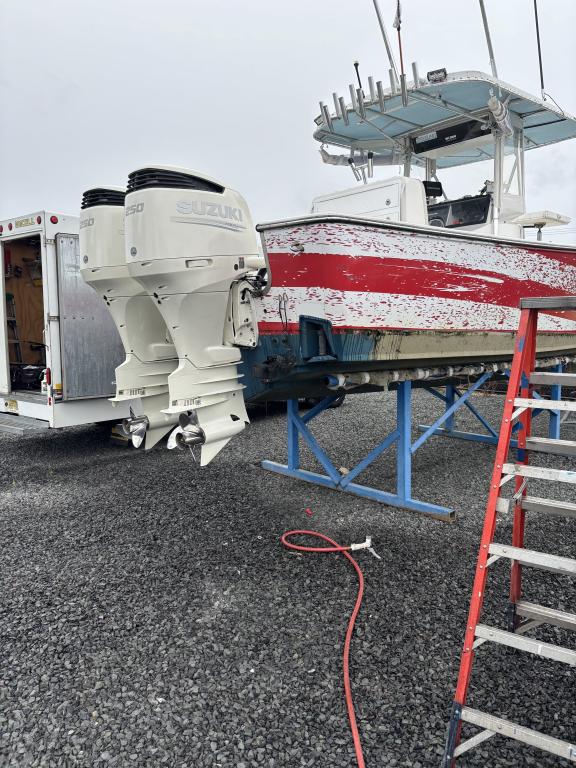 Trailer is just about ready to go now too! All new: Hubs, Tires, wheels, Brakes & actuator. Updated Asking $85,000 OBO. Video tour after Fall Detailing Repowered with 274 hour Suzuki 250 HP motors in WHITE. Updated hours are 305 now as of winter nap. She gets 1.1-1.3 MPG with a moderate load. Half load of fuel...100 gallons...4300 RPM 28 kts at 26.6 Gph This amazing SeaCraft is ready to fish! She is a genuine 3 season fishing boat. 3 sided Polycarbonate Enclosed helm with Gull Wings keeps you nice and dry in foul weather or spray. This SeaCraft 32 has a great ride…she doesn’t pound in seas and takes a chop in the teeth like a champ. On plane she cruises very nicely and handles like a dream. Suzuki Troll mode helps for fine tuning your trolling speeds 50 RPM per button push. C-10 Gauge set with NEMA 2000 networking. 96 inch RHODAN tolling Motor/Spot Lock with 36v system with 2023 Group 31 AGM batteries on NOCO genius 3 bank Battery charger. Holds the boat steady in most reasonable conditions. Game changer for bottom fishing or holding over or near structure. Raymarine Hybridtouch ES127 (no touch) GPS Fishfinder 12 inch with 1kw Airmar 265 Transom Mounted transducer. DSM 300 sounder module. Sirus Satellite Weather Ready with Antenna. 24 Mile RAYMARINE Digital Radar. Humminbird HELIX 9 inch CHIRP Mega Side Scan Sonar/GPS unit networked to NEMA 2000. Twin Tranducers for Sidescan functionality. Custom American Flag Wrap on top of a dark blue gelcoat hull. Boat is bottom painted. 2021 Upgrades: Custom Helm seat and Tackle Center from Nautical Designs in PA. Amazing upgrade with loads of space for all your tackle storage needs. A fold down rigging table, drawers and plenty of space for Plano boxes make the rear of the seat the most useful area on the boat. 6 rod holders with 3 cup holders on top with grab handles on the back side. 2024: NEW Blue Top AGM Group 24 Starting Batteries and Group 31 AGM House Battery on NOCO Genius 3 bank Battery Charger. NEW Shakespeare VHF Antenna NEW PYLE 4 ch Amplifier with Bluetooth NEW PYLE Bluetooth Streaming Receiver NEW 6.5 inch Dual Cone Speakers NEW Combing Bolsters Stern to Bow NEW Coffin Box/Forward Livewell Seating Cushions. NEW Pair of Lenco Actuators for/beneath Coffin box NEW Bilge Pumps & Float Switches NEW (2) Livewell Pumps Stbd Stern & Forward Vinyl T-Top with 11 rocket launcher rod holders. Plenty of vertical storage for all the rods. 16 ft RUPP Aluminum Outriggers Boat Includes Aluminum Refurbished Loadmaster Triple Axle Aluminum Trailer. fishstixruler@gmail.com Or 908-578-4606 for more info.
