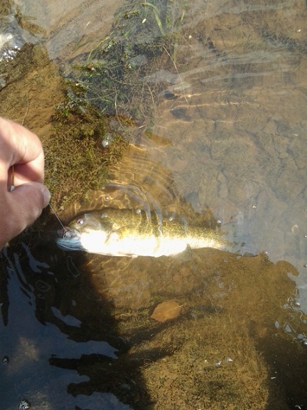 Went to Neshanic station and it was the usual zoo of people but i fished both up and downstream from them. using a trout slayer, i caught a few sunnies and a smallie, lost a bigger fish that looked a solid pound, and headed downstream after the action there slowed. Got another 2 dozen sunnies and 4 smallies. The last fish hit a rebel crayfish and looked around 11". Hot summer days are best spent wading in a bathing suit on either branch of the mighty raritan