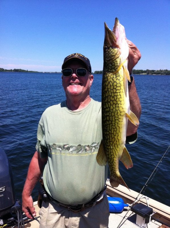 Also, an interesting note I forgot to mention, some of the pike we caught looked pretty sickly. There were some that had scars and bleeding sores on them. According to our guide, this is called esox carcinoma, which results in benign growths that eventually fall off and result in scarring. Some of the scars looked a lot like lamprey bites, which I mistook them for at first. As far as the guide knows, he does not believe this condition harms the fish a great deal. There were also a couple pike we caught that were covered in parasites; it looked like they were rolled in coffee grounds! Again, the guide stated that these parasites do not cause any great damage to the fish. FYI, the winner of the FLW tournament that was going on was David Dudley with 78 lbs. 8 oz.