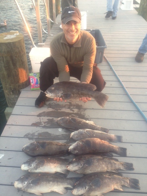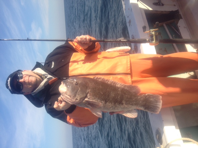 As usual, Jerry had us on fish right away with my brother boating several quality fish on the first drop. My buddie Rich (Tognut) then caught a nice 7 1/2 lb female leading the daily pool bragging rights. The rock bite slowed down so Capt decided to make a move to some wrecks. The first drop proved to be the ticket as Dom instantly boated a slob over 10 1/2 lbs. My brother then caught several 5 lbers in a row. That was my queue for a brotherly mugging, which I converted into my own streak of keepers. Then, I got the big bite i was looking for, a 10lb slob.