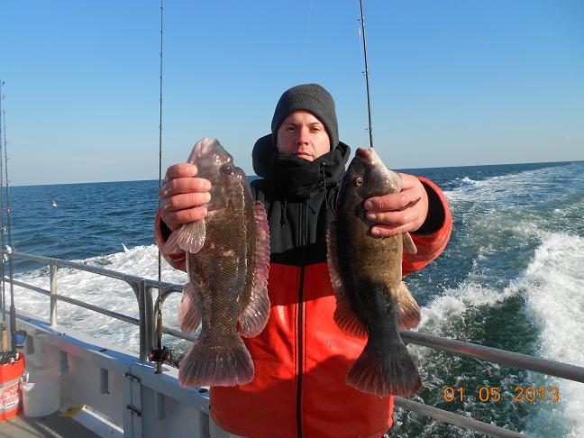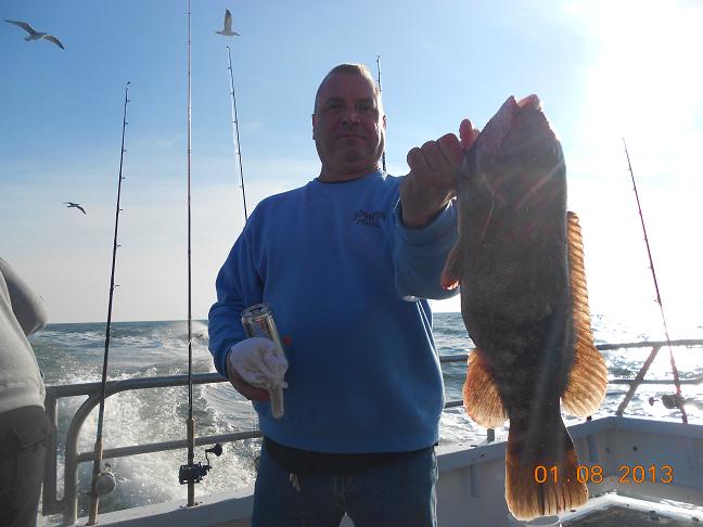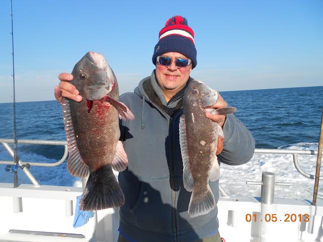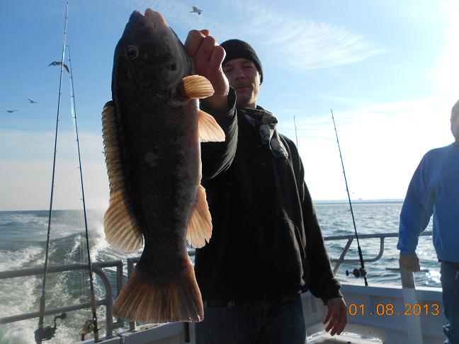 Hey gang, Capt. Scott here. I have the boat out today and we have some nice tog on the boat with limits. Catching them on green crabs and white leggers. Will post pictures when I get home this afternoon. Capt. Glenn had a good trips on Sat. and Sun. too. Looking forward to getting back out here. We have regulars coming down. Capt. Glenn will be at the boat in the A.M. I'll see you on Thurs. Heated handrails, green crabs supplied, white leggers available for a fee. Thanks, Capt. Scott