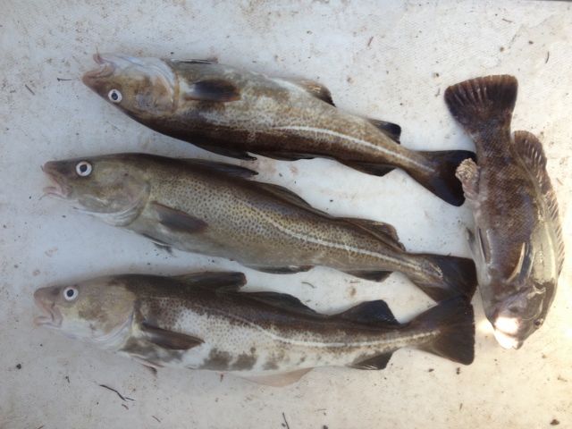 Headed out for the maiden voyage yesterday with my buddy Chris. Left at 10:30 and was back by 4:00. No one had greenies, so we had to clam. Very nice on the water. First stop a little inshore was a dud! Usually good this time of the year, but the water was way to cold. Headed east to a deeper drop where we thought there would have been other boats, but we where by ourselves. Bergall life, then the first nice hit. 28" cod. Stayed their the rest of the day with a few wiggles. In total, 3 keeper cod, 1 keeper black, several ling, and tons of short cod and blackfish. All in all, a good first trip!