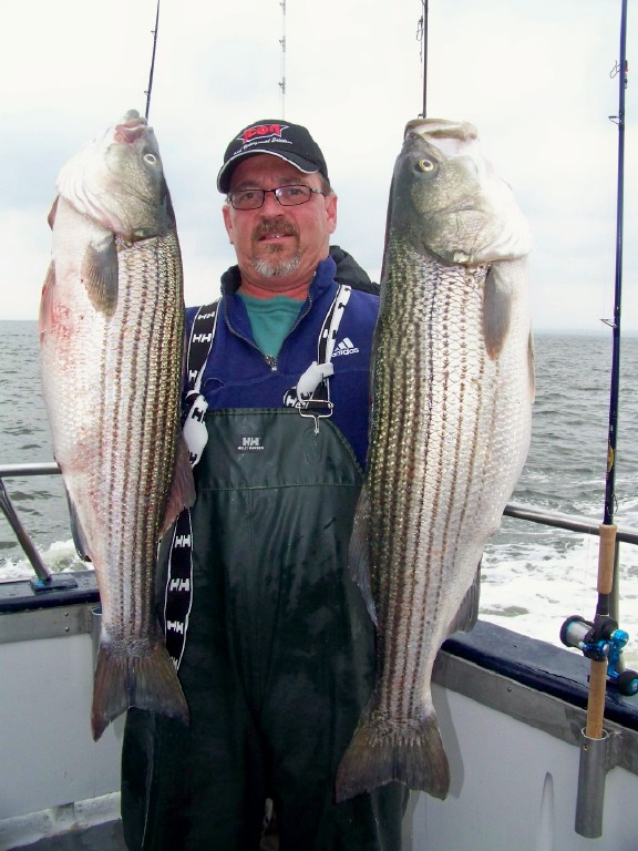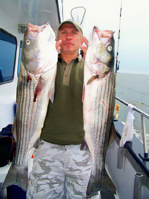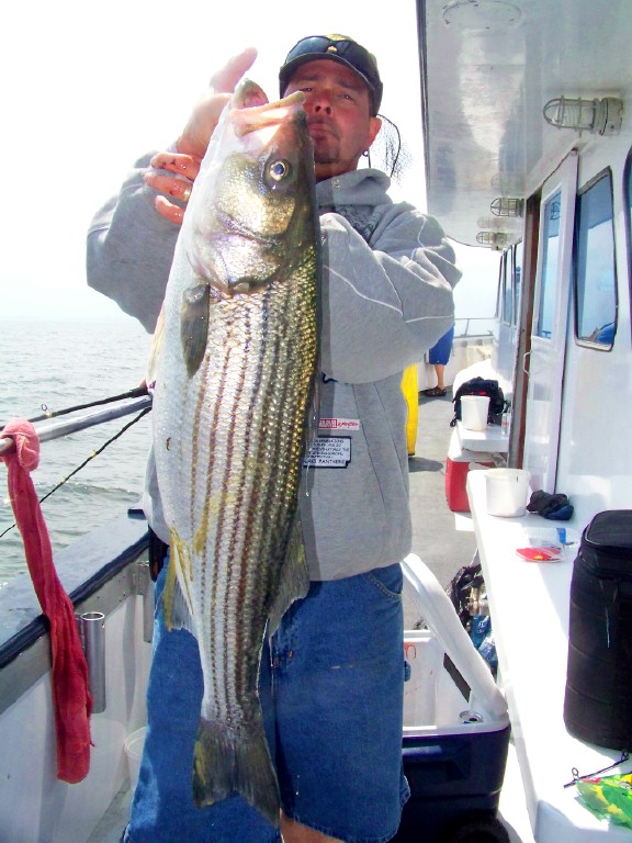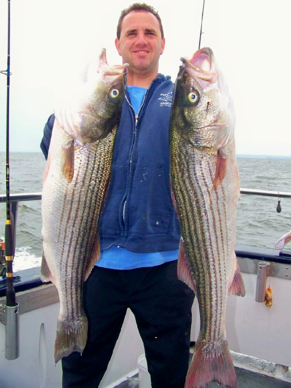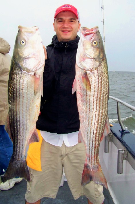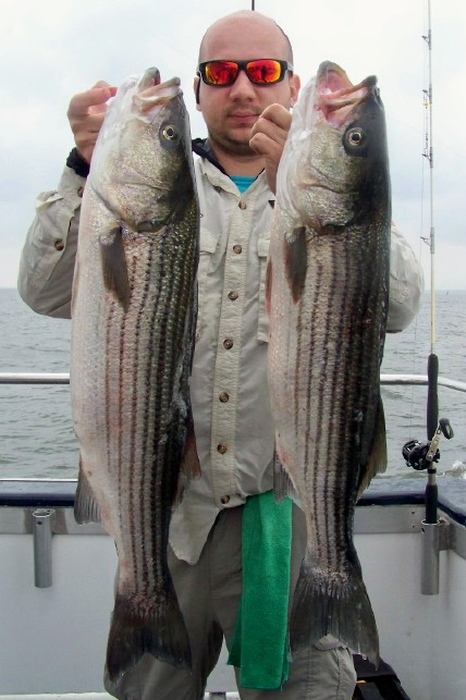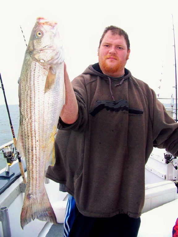 Chad lead the way with 10 big fish! Several limits with all quality fish...Weatherman did it too us again! Capt. Dan had a late bite last night. Once again he had to wait for the current for things to turn on, but he still managed a nice catch of keeper Stripers for the customers. |