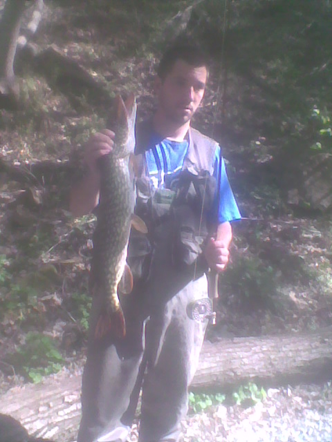 Gr8 job!! way to get that river monster outta there, away from the wild fish.....Did you keep it or just move him??He would prob do well in the lower raritan...anyway gr8 catch wit the woopin stick