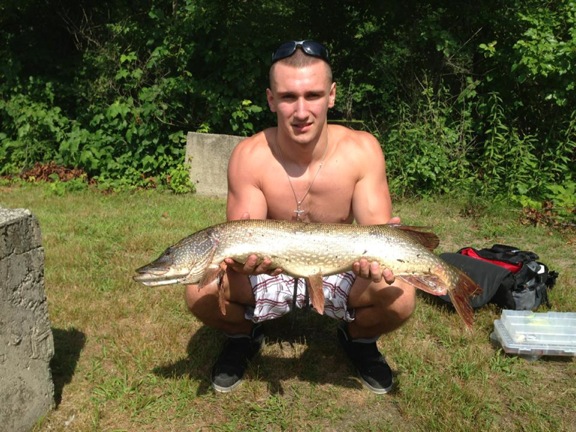 Thats a big ass Pike!!! Nice catch!!! The pic doesn't do the fish justice. Looks like its dead!!!