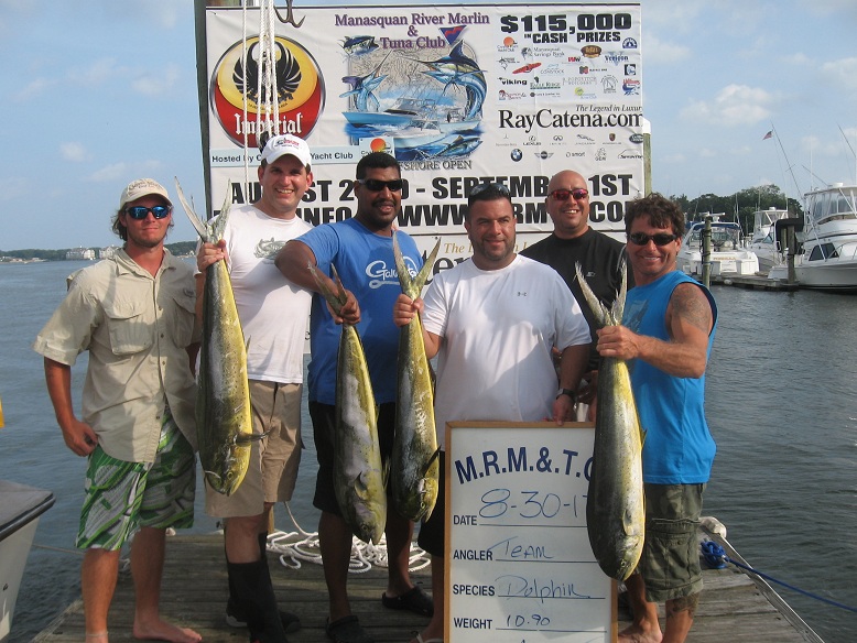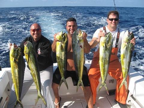Had regulars Dan Payet, Oscar Carillo, and Jerry Tomaselli out for canyon trip with help from Joe and Ed , goal was to compete in 4 categories tuna,mahi,sword, wahoo. Left to canyon in bad seas making for a long brutal run, knowing that next day in morning would be nice to run home in. Wound up going to Lindenkohl due to good sat shot. Only 1 mahi on evening troll and night chunk. Troll next morning was slow until we found a school of mahi, broke out the spinning rods and went to work on them. After some discussion with crew we decided to make the long run home in calm seas and weigh in our mahi. At the the time we missed first place and 6k by 2 oz! Great guys to fish wth.