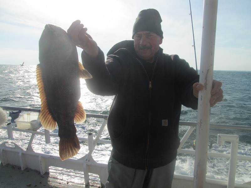 Yes it was cold and a little windy today but that is what makes the black fish bite. It was a one drop day today with fish coming around the boat all day. I fished today and had great fun. I never had to wait 2 minutes for a bite and caught of 30 fish today with a little over a limit in keepers. A two hook slider rig with 10 oz weight and green crabs was the ticket. Everyone caught fish and went home with fish today. Joe from Roselle Park had todays pool fish. There were a number of limits plus today.