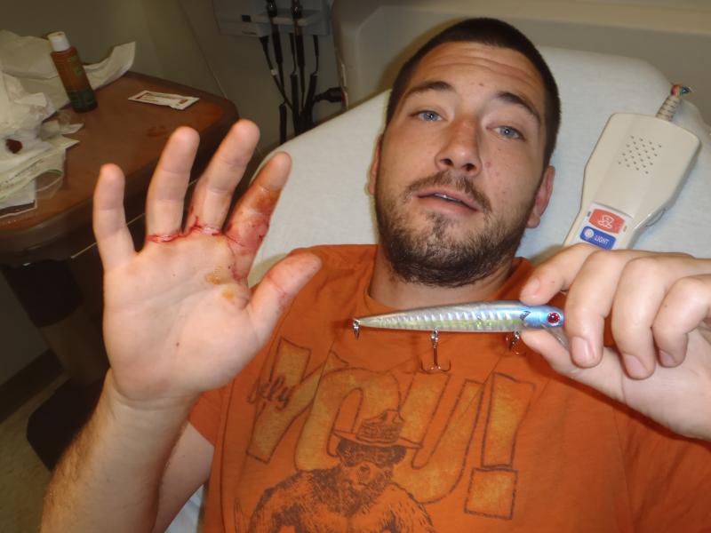 Great catch and awesome injury buddy boy! Did they cut the hooks on that nice new lure? Thats one hell of a walleye dude! Congrats on a fine catch. You da man!!!