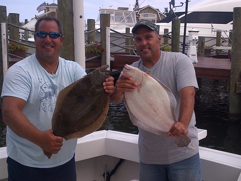 Little did I know we stopped 6 miles out of the inlet and started trolling. Had a couple of small knock downs, landed a small mahi (I mean small) and let him go followed by a bonito that we ate as we cleaned the boat. The hit the fluke grounds for the BEST FLUKING I have seen this year. Dropped down first time and hit him on the head. Keeper #1 in the boat. We made 4 drifts and had 9 keepers. I had my limit to 25 inches, 1 sundial and countless shorts. My neighbor even kept a skate and cut the wings. Tight lines and be safe. |