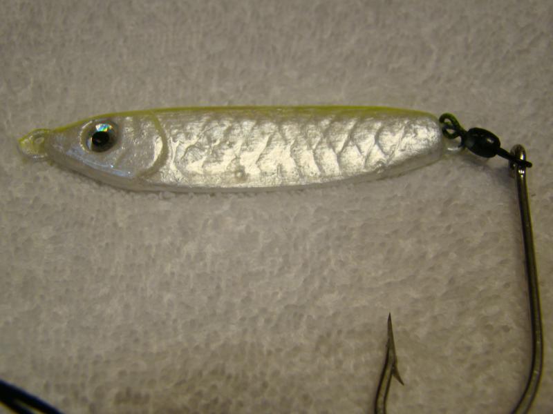 The new jigs are pearlized with white pearl and a top coat of flo green, flo yellow, or plain white pearl.Coated in devcon 2-ton for superior resistane to the toothy critters..the body was adjusted to put more weight in the head and tail section and we cut some out of the middle to better the wobble effect of this jig.. a great new jig for cast and retrieve method or drop and vertical jig Last edited by PALMERS TACKLE; 09-11-2014 at 06:34 PM.. |