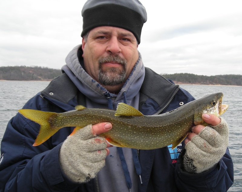 Met up with GetANet Sunday morning and we headed to RVR. We were on the water by 9:45-10:00. Trolled 3 rods; nothing crazy... Flat lines and planer boards. Small to smallish plugs were the ticket for the 2 lakers we nabbed. One about 16" and the other around 23". Marks were tough to come by where we fished and both fish were caught around 30-40' of water--on medium to shallow running plugs. Wind picked up around 2 PM as was forecasted and we were off the water by 2:45. Not a bad way to spend a mild December day. It was also my 1st lake trout--one more scratched off the ol' list! Here's som pics! Catch em' up!
