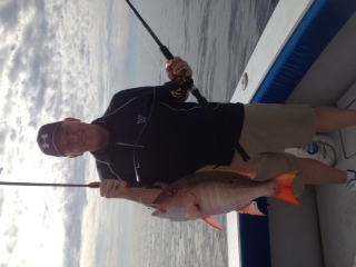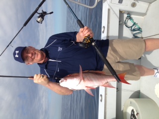 I had Louise and John Blake out today, they wanted some eating type fish instead of sails. I ran up to Juno pier to see if any Spanish Macks were sill around but they seem to have vacated the area. The ony thing we got trolling were Lizard fish and perfect bait sized blue runners. I made a hard right and ran out to 120' and we started soaking various baits. The Blakes were able to make a couple of catches which put us on top of the annual leader board in two categories. The troll home was uneventful, it was just too flat today !