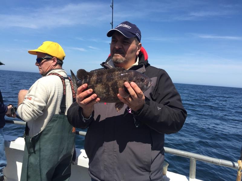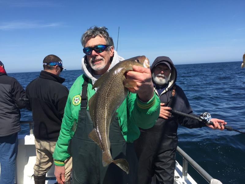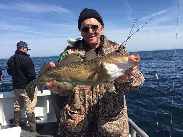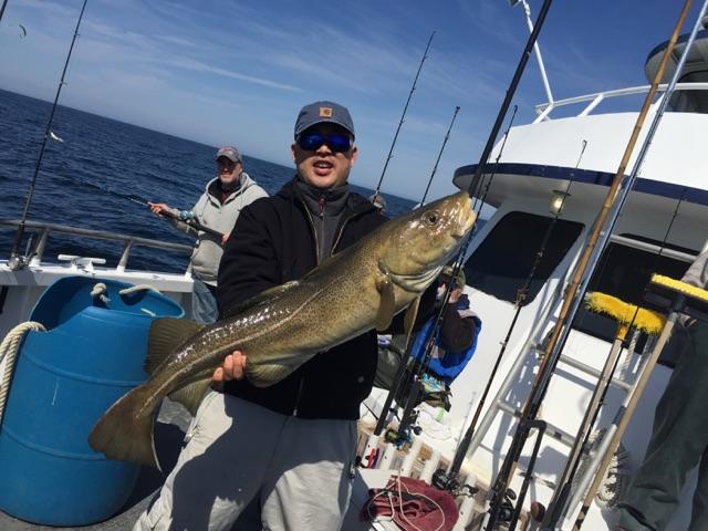 4-6-15 Another nice size codfish took the pool today,,pretty nice all around with some shorts cods coming up along with a few nicer size fish,,some ling and a few keeper blackfish mixed in,,,not good fishing but better than the last trip..Also busted off some other big fish which we are gonna have to go back and get tomorrow!!Weather and ocean look good for tomorrow so see ya in the morning!!pics.
