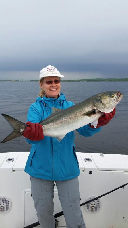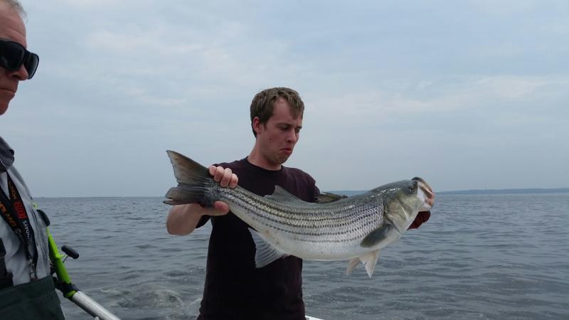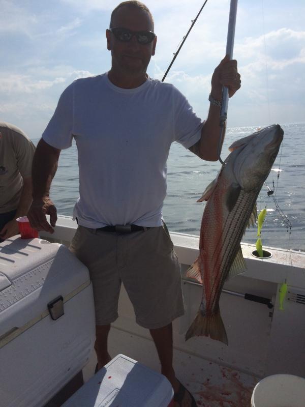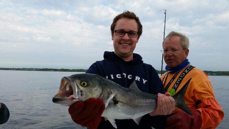 On Saturday, Capt. Ed hosted the Josh Tarnoff charter. He's been trying to get out with us since last summer, but every trip we had scheduled got blown out so I'm glad the weather finally cooperated. They had a good time bending the rods with blues up to 12lbs and they were able to pick up 1 bass on the troll which weighed in around 17lbs. Sunday, Capt. Ed and I had out Jeff Gheraldi and the boys for an afternoon trip. It was definitely slower fishing compared to Sat with a blue here and there, but still enough action to keep the adrenaline rush going. A few hours into the trip we boated our first bass. Unfortunately, it wound up being our only bass of the night. The guys still had a blast enjoying a beautiful evening on the water with a lot of laughs (and cocktails). We will be running open boat trips on Wed, Fri and Sun this week. Please call or email me if you're interested in joining us. ~Capt. Kevin