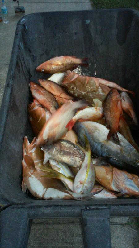 Shoot out about 35 miles to start, first spot slow. Made a move and started catching. For the first 3 quarters of the day we had plenty of action with short red grouper plus misc other fish. We were catching Lane Snapper, Mangrove snapper, yellow tail snappers, grunt, porgies plus the various squirrel fish and lizard fish