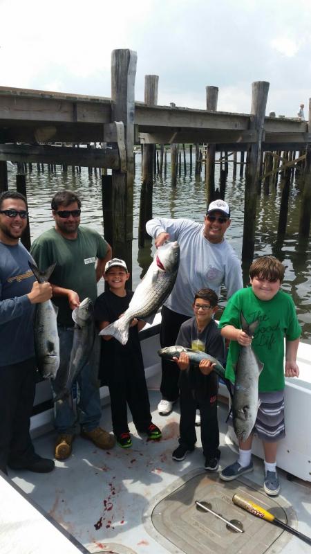 Fished with the Dan Craney crew from Craney Fence. Roamed around the back looking to find some bait then steamed out to where we have been doing pretty well with the bass. The boys just wanted the rods bent so we decided to stick around after the blues found us. After a few hours we dropped the spoons in and young Luke Wassef caught the big bass Around 30 lbs. Then we anchored again and finished the day bluefishing. Looks like Thursday is our next open twilight trip.