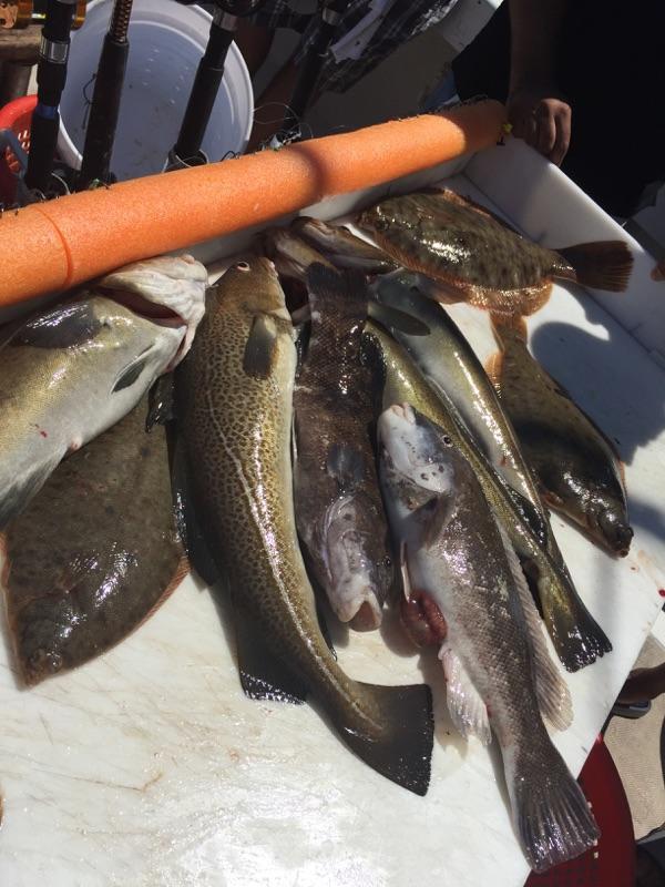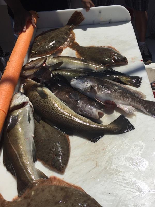Today we ran a 6 am bottom dwellers trip for Chad with a big party of family and friends. Needless to say with Capt. Rob dialed in, we didn't miss a beat, and the fishing for all kinds of assorted bottom dwellers made their way onboard, into the baskets then fileted, bagged and properly iced for their ride home. Anthony worked the deck like a champ once again. Big Ling, Cod, Jumbo Flounders, Seabass, Tog and the assorted undesirables. With the beautiful weather and no afternoon trip, we took our time and gave everyone a little more time to catch a few more