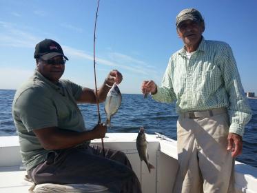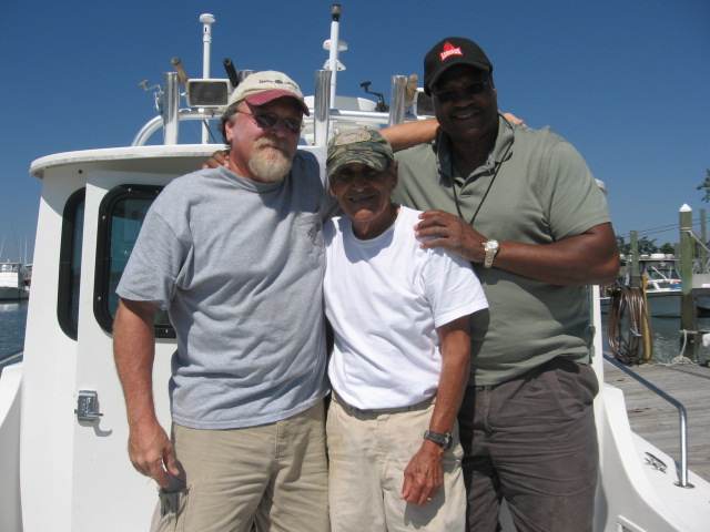 We had former heavyweight champ Larry Holmes on the boat with us today. The fight between Holmes and the Porgys started at 7 am. I was judge and referee for this bout. The first two rounds I gave to the Porgys, Holmes swinging lefts and rights but coming up empty each time. By the third round, the champ was getting the feel for his opponent, and put several in the box. The fourth round Holmes came out swinging. He hurt the Porgys bad and I almost stopped the fight but decided to give the Porgys a standing 8 count. The fifth round Holmes came out fast and hard. He landed a left hook, a right hook, a couple of Mustad hooks, and the fight was over. HOLMES WINS BY KNOCKOUT.